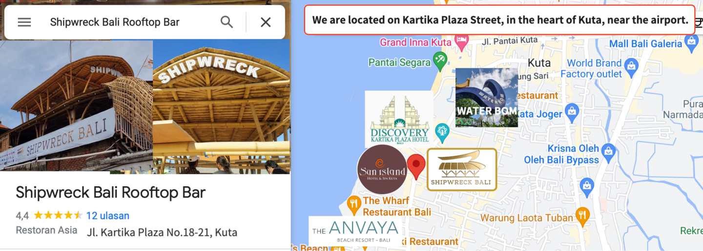 We are located along Kartika Plaza Street in the heart of Kuta. We are the newest sports bar and restaurant with artistic architecture and comfortable space using Bali's famous bamboo.